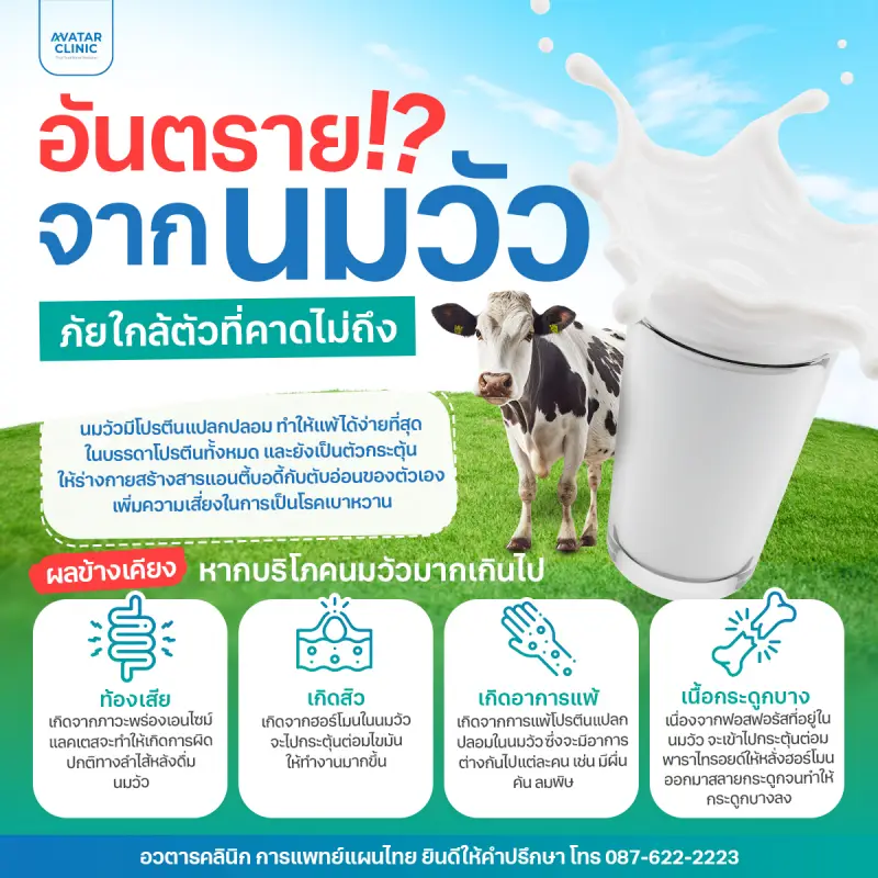 แม้ นมวัว จะเป็นเครื่องดื่มที่ให้แคลเซียมและวิตามินต่าง ๆ กับร่างกายของเรา แต่รู้หรือไม่ว่า นมวัวนั้นก็มีอันตรายที่ซ่อนอยู่เช่นกัน